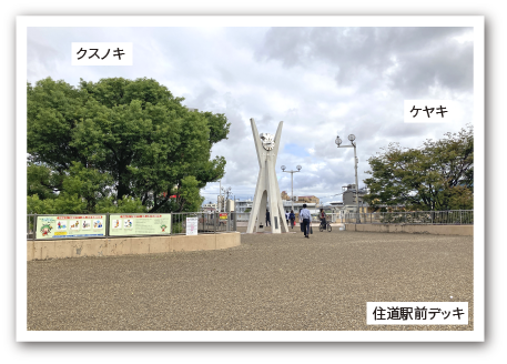 しかし令和5年度に策定された「住道駅前デッキ整備方針」によって、この木々が伐採の対象となりました。「駅前のにぎわい創出」が理由とされていますが、その詳しい計画は市民にほとんど周知されず、密かに進められてきました。最近になって突然「樹木伐採」の話が知らされ、多くの人が驚きと不信感を抱いています。